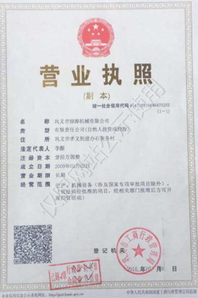 绿源机械成立以来,以其雄厚的技术为依托,市场需求为己任,附以现代化的生产车间,精湛的制造工艺,赢得了广大用户的赞誉和信赖,绿源机械畅销国内外市场。服务网点遍布国内贵州、四川、广西、湖南、广东、山东、山西等29座城市,建立客户使用档案,使传统上门服务与网络在线服务双管齐下,优势互补,贴心,赢得了客户们的广泛赞誉。 绿源机械秉承诚信经营,技术先进,服务优良,与客户合作共赢的服务理念。